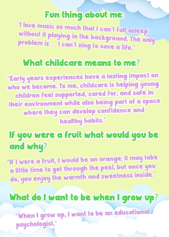 They share a common goal: to create a nurturing environment filled with joy, where exceptional personalities collaborate to bring the fun back into childcare.